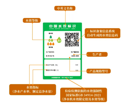 水效標(biāo)識(shí)包含信息(以凈水機(jī)水效標(biāo)識(shí)為例)