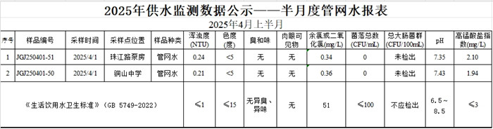 2025年4月上半月度管網水