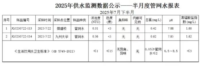 2025年7月下半月管網水